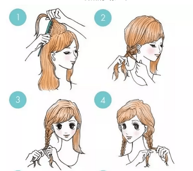 Step1: Firstly, comb the hair, take a bunch of hair on both sides of the head, twist them into the back of the head and assemble it into a ponytail, then fix it down and tighten it with a leather band.